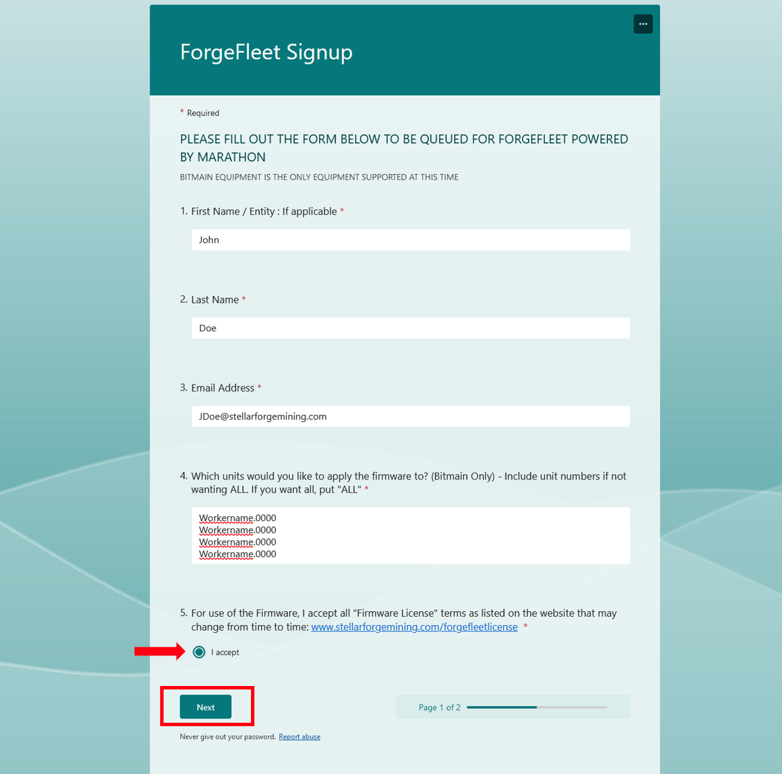 Note: Inaccurate information submitted may result a delay in the installation of Forgefleet. Step 5: